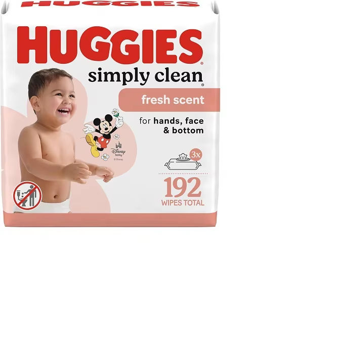 Toallitas húmedas con fragancia suave para bebé Huggies Simply Clean, respetuosas con el medio ambiente, 3 paquetes abatibles de 64 toallitas húmedas con fragancia suave, 192 toallitas en total