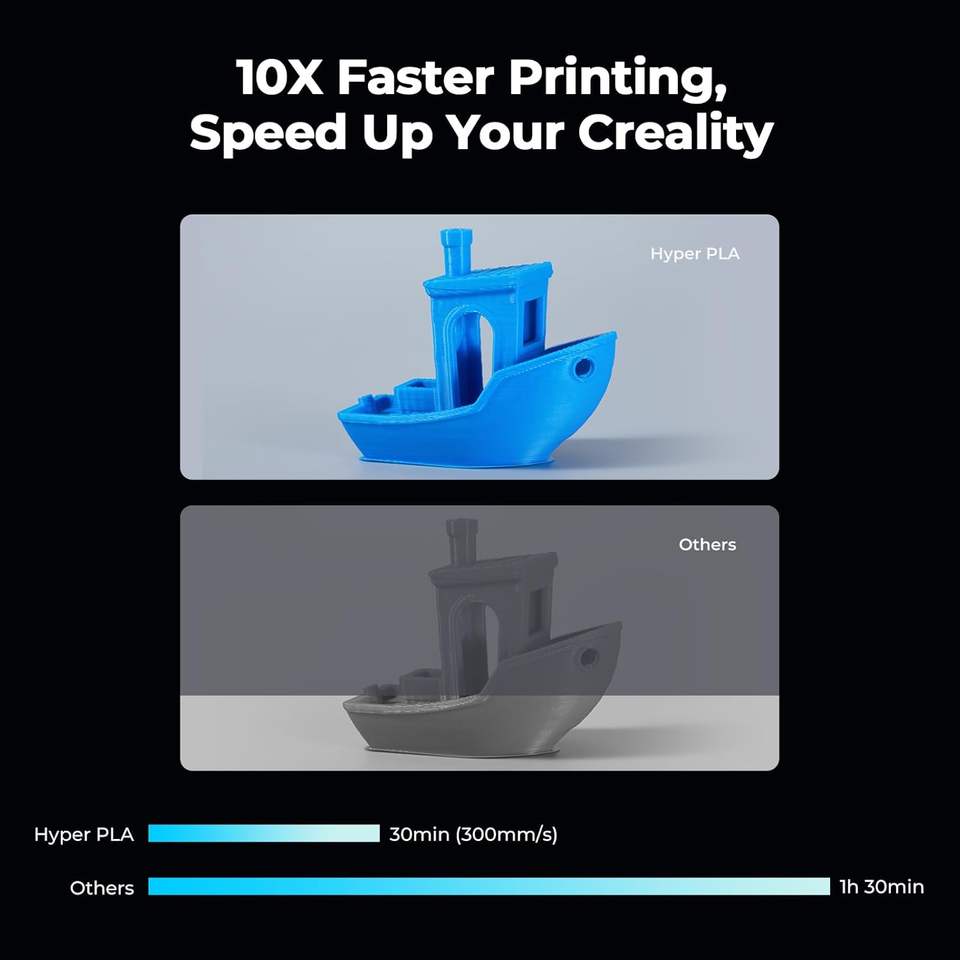 Filamento de Ácido Poliláctico Hyper PLA de 1.75mm, Bobina de 1kg para Impresora 3D, Impresión de Alta Velocidad, Color Negro
