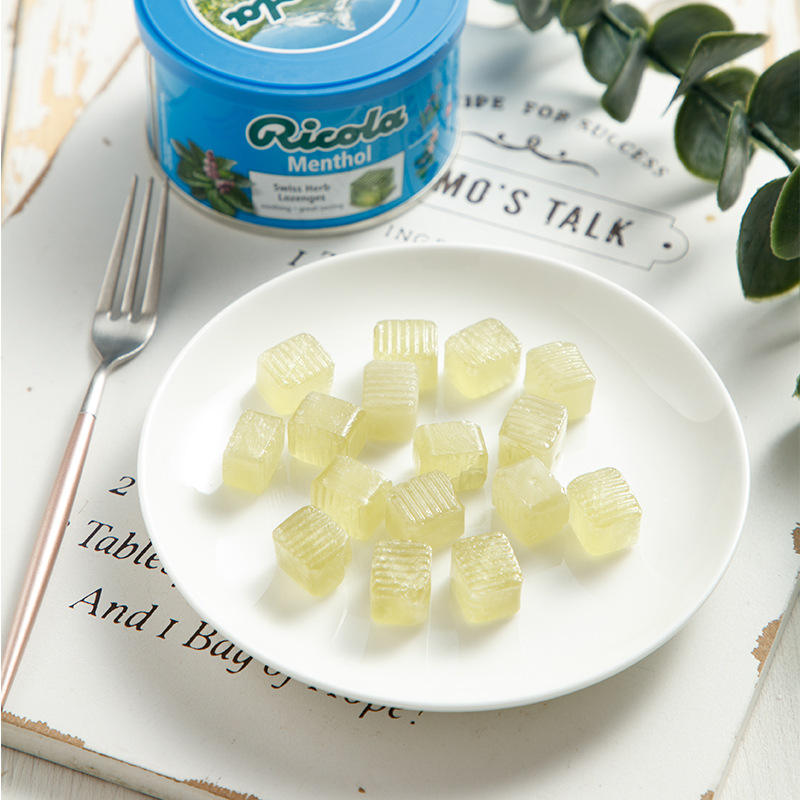 Caramelos de Regaliz Ricola Importados, Caramelos Duros Recubiertos con Sabores Frutales, 100g en Lata, Certificación HACCP, Sabor Dulce