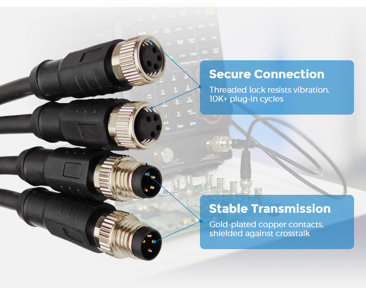 Conector Circular de 3 Pines con Código A para Automatización Industrial, Cable de Cobre Tipo Soldadura M8, PVC, PUR, UTP