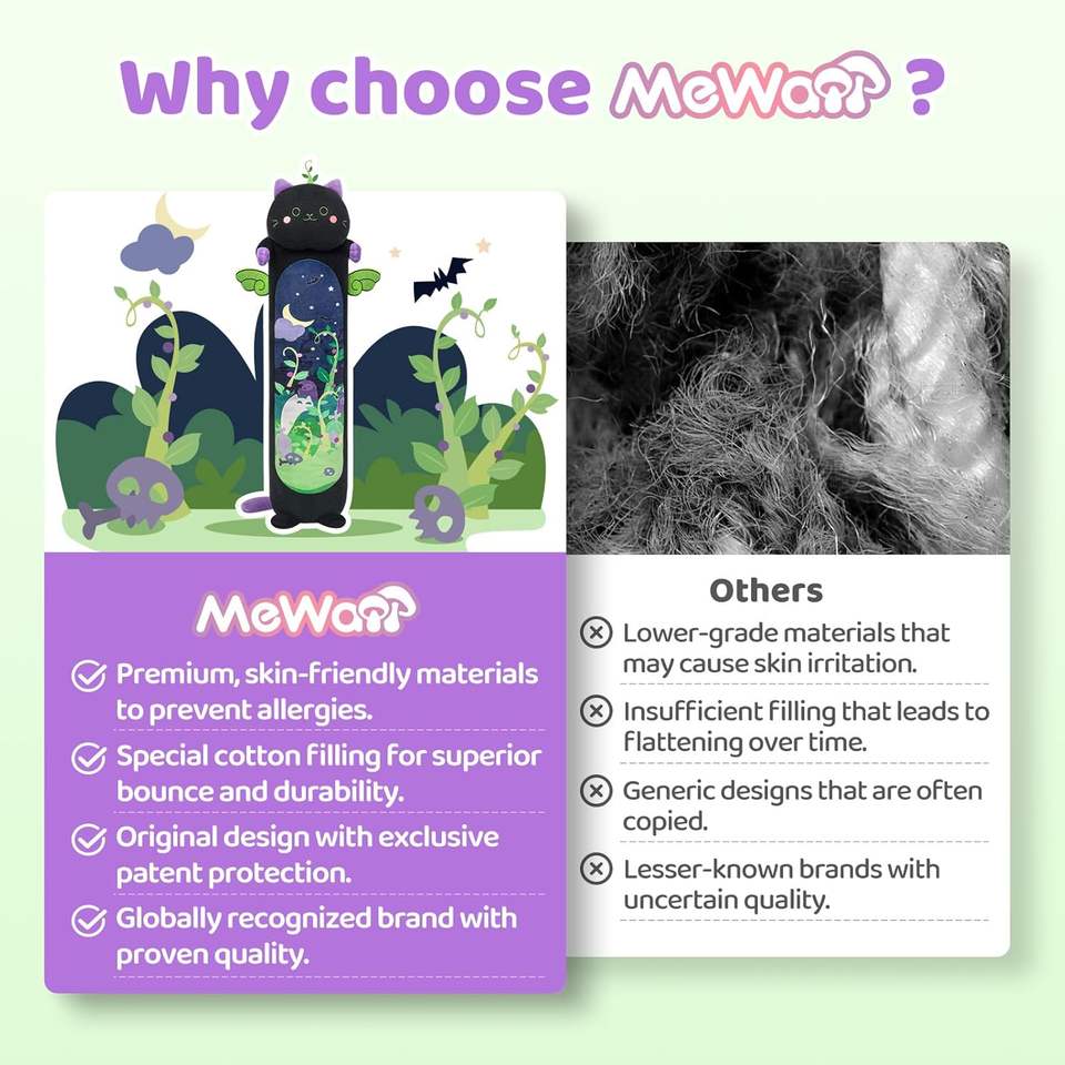 Peluche de Gato Negro Kawaii, 5 Tamaños, 120% de Relleno Extra, Peluche Gigante, Almohada Corporal para Niños de 3+ Años, Peluche Largo