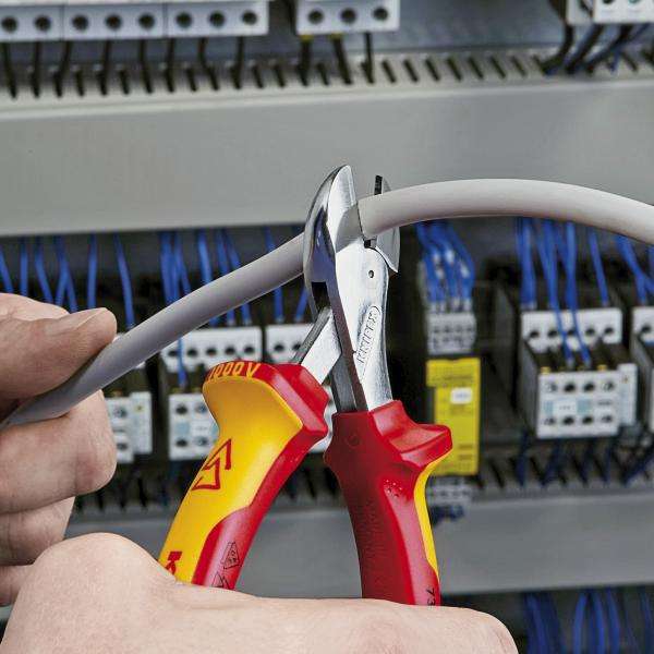 Alicates de Corte Diagonal Compactos Knipex X-Cut con Transmisión de Alta Potencia, Cromados y con Empuñaduras Multicomponentes Aisladas