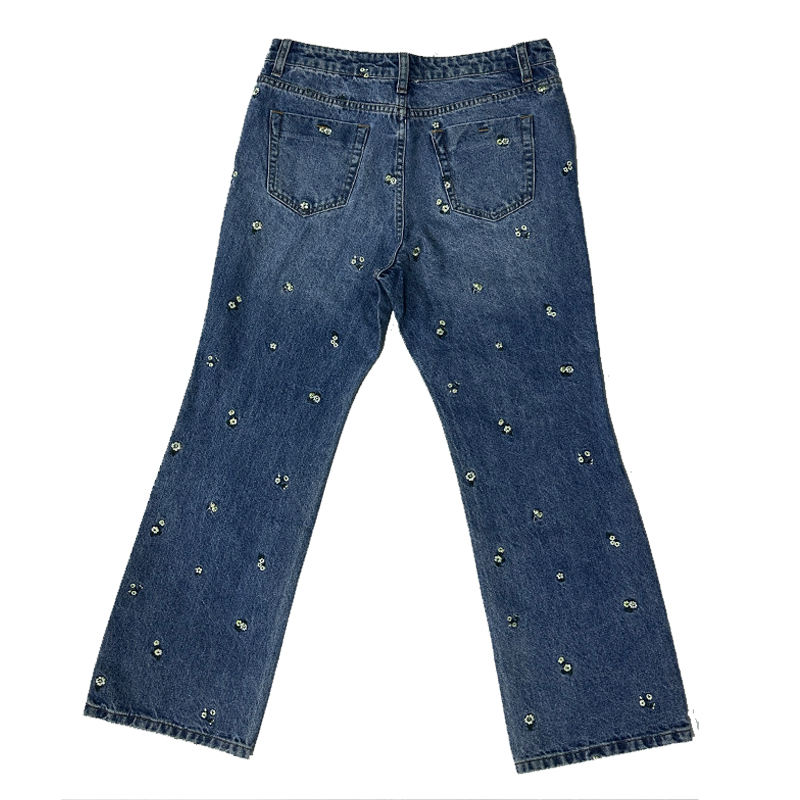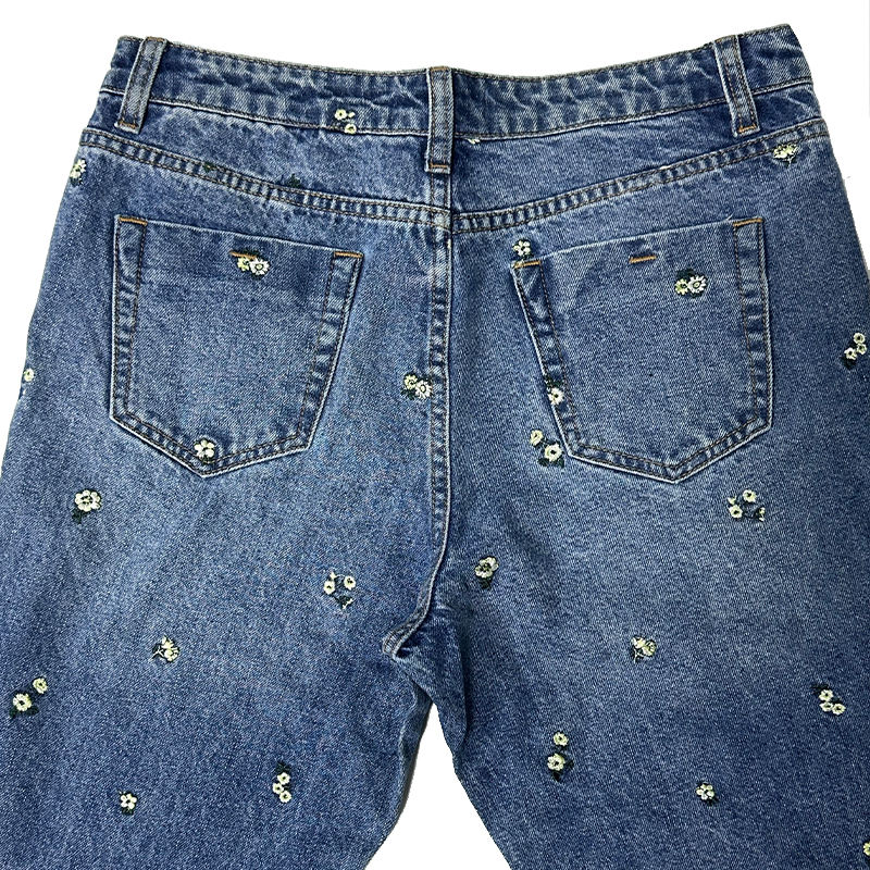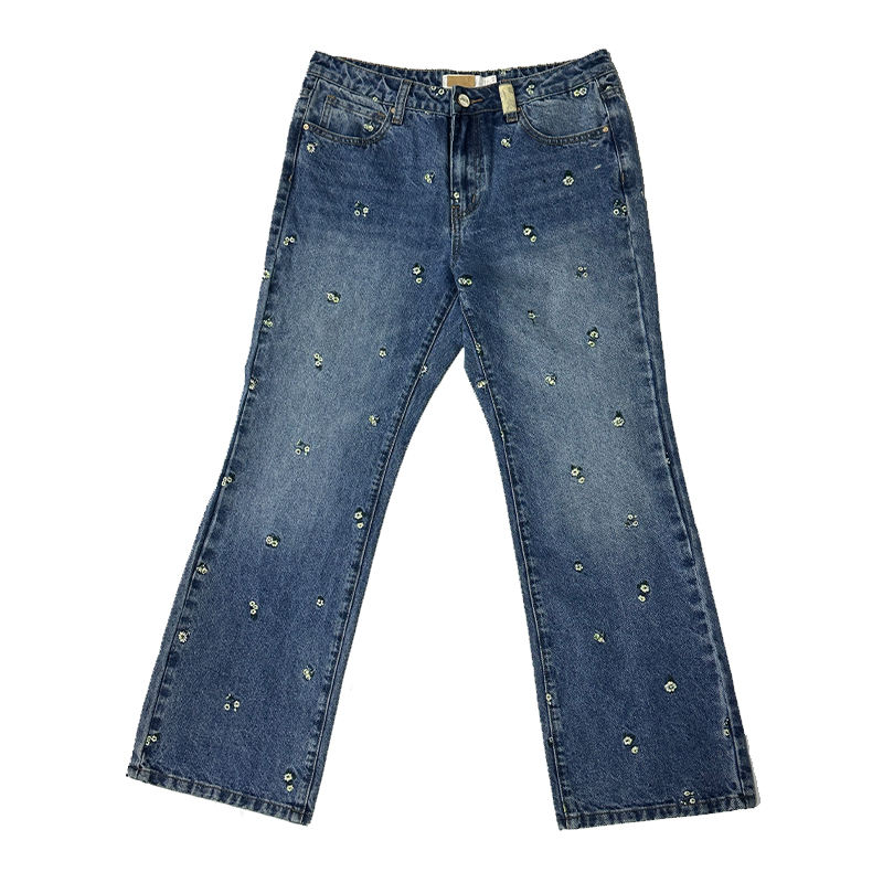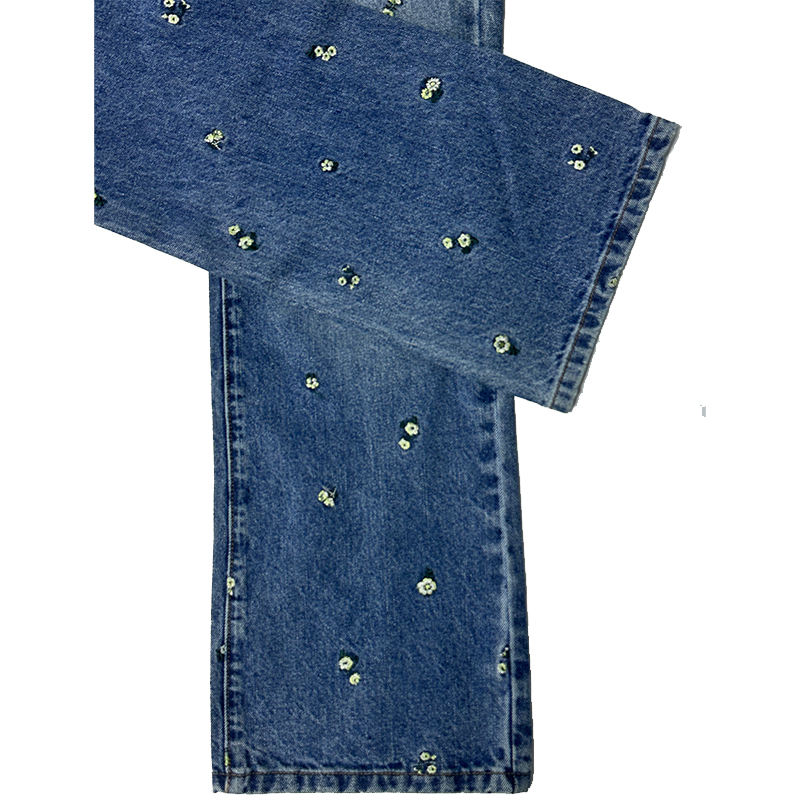 Jeans Lee High-Rise Daisy Flare para Mujer, Pantalones Anchos de Color Claro con Bordado Floral, Corte de Bota, Abertura Lateral, Estilo Moderno