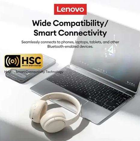Auriculares Inalámbricos Plegables Over-Ear Lenovo TH20, 30H de Reproducción, Controlador de 40mm, Micrófono con Cancelación de Ruido para Juegos y Viajes