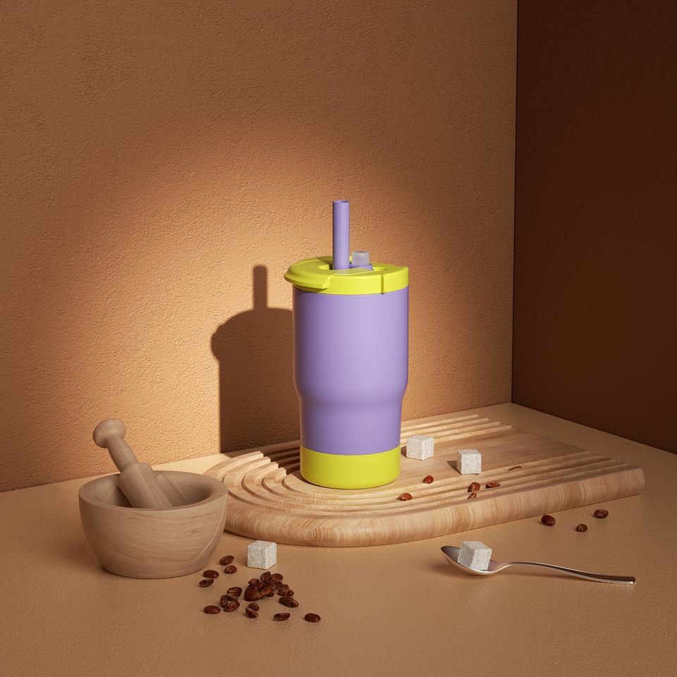 Vaso Térmico Portátil Ecológico Ligero de Acero Inoxidable 304 Color Morado con Tapa, 350 ml, Aislamiento Térmico de 12-24 Horas, para Oficina, Gimnasio, Viajes