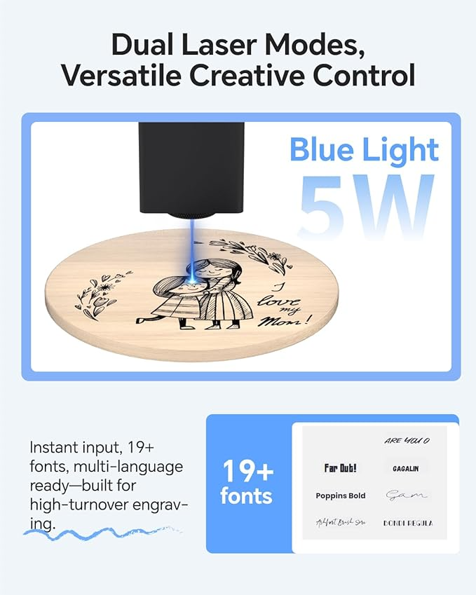 Grabador/Cortador Láser de Diodo ORTUR R11.3W, Velocidad de 5000 mm/min, Diseño Plegable Portátil para Metal, Madera, Goma, Plástico, Alta Seguridad