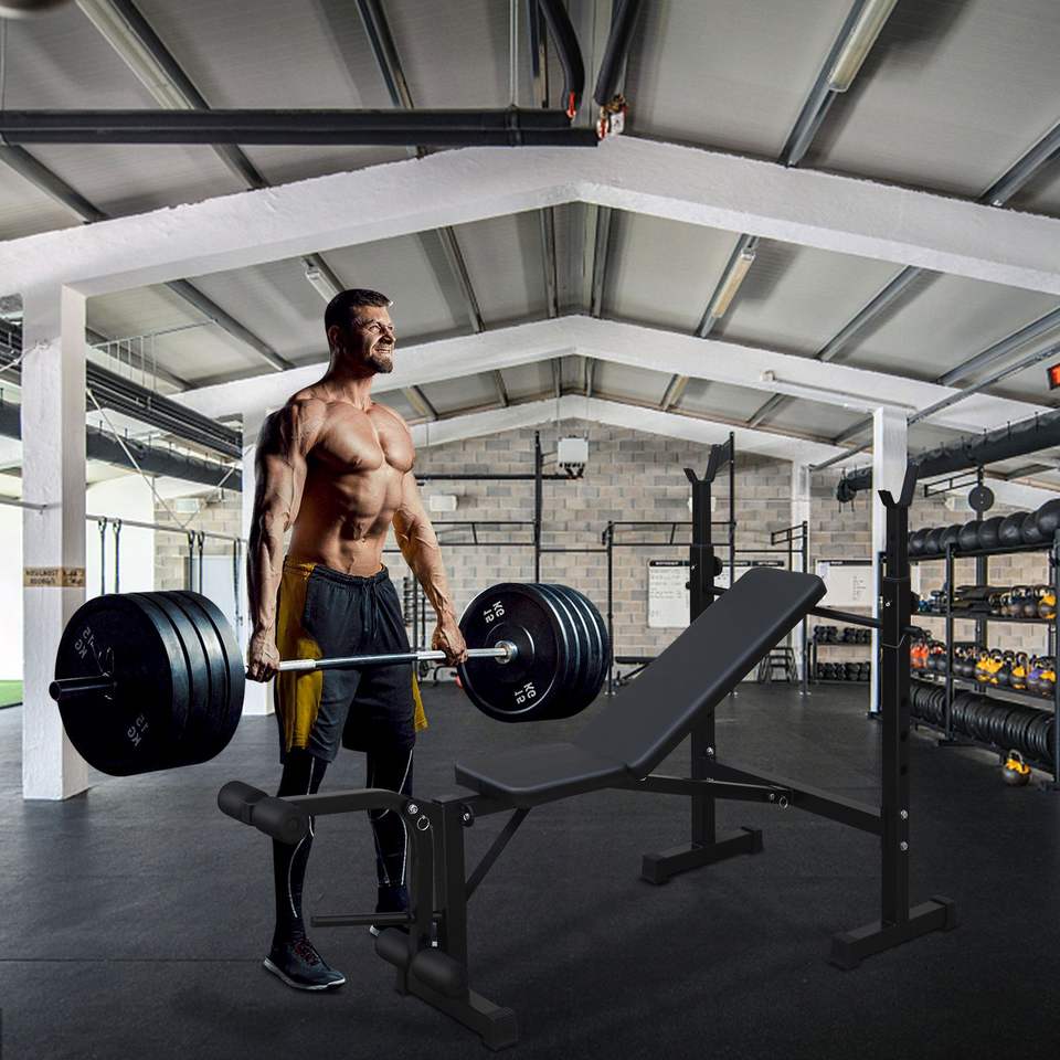Banco de Pesas Olímpico con Soporte para Sentadillas para Entrenamiento de Cuerpo Completo en Casa