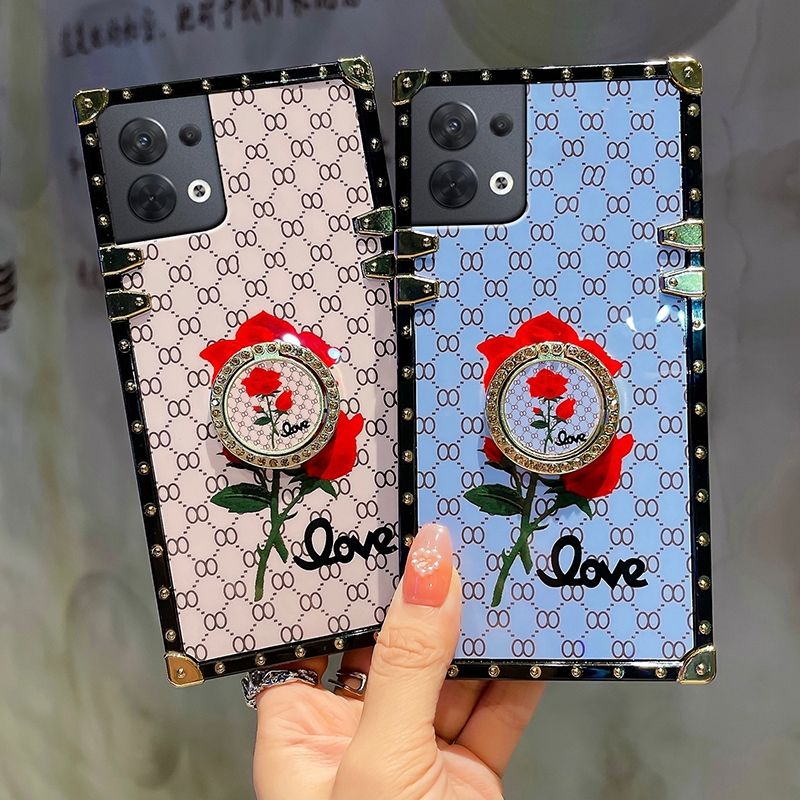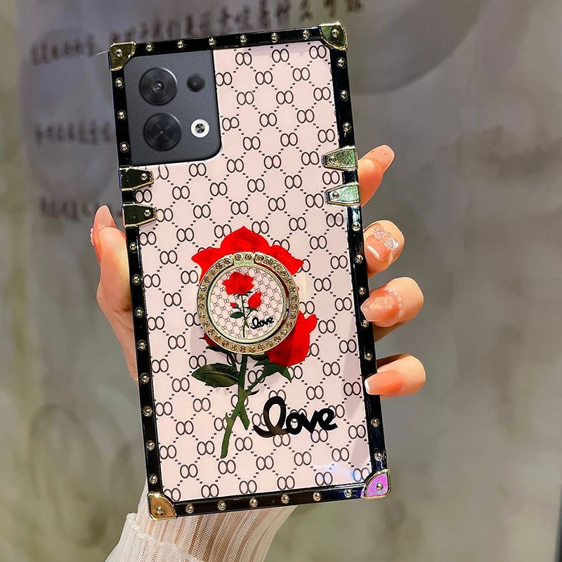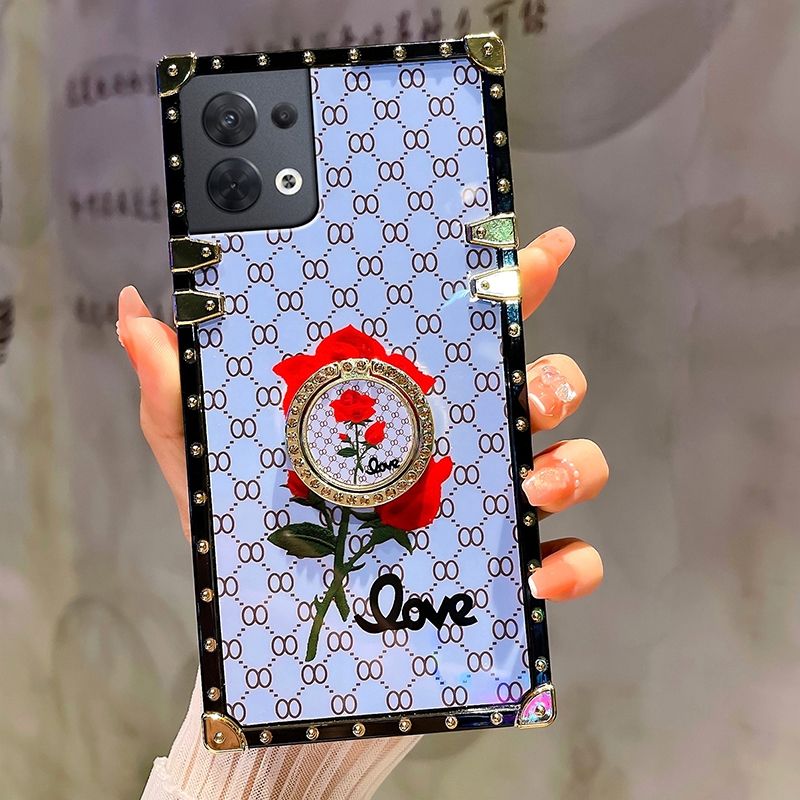 Para Oppo Reno 8 Pro Funda resistente con espejo, funda de teléfono Rose para Oppo A58/A58X/A78/A97/A57/Realme C33