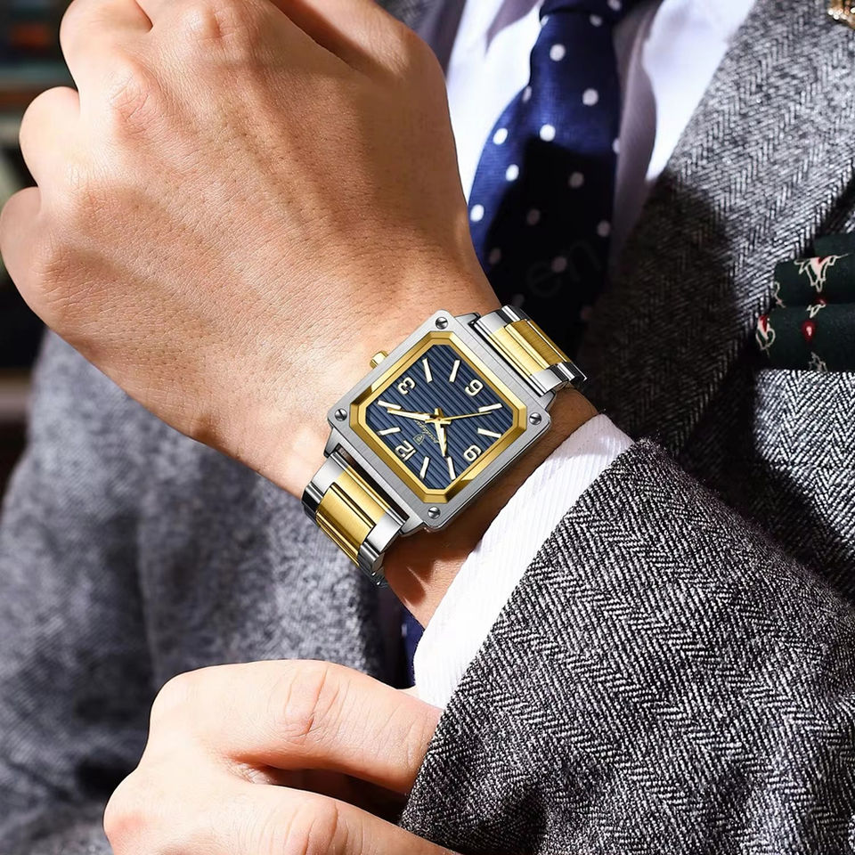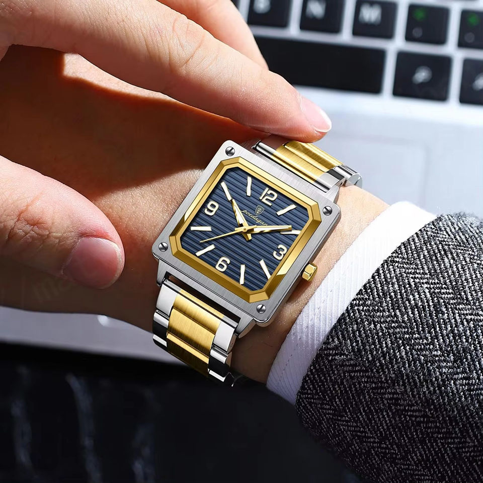 Para POEDAGAR 870, reloj de cuarzo para hombre, caja cuadrada de acero inoxidable de lujo, banda de cuero luminosa, ventana de esfera de cristal para deportes