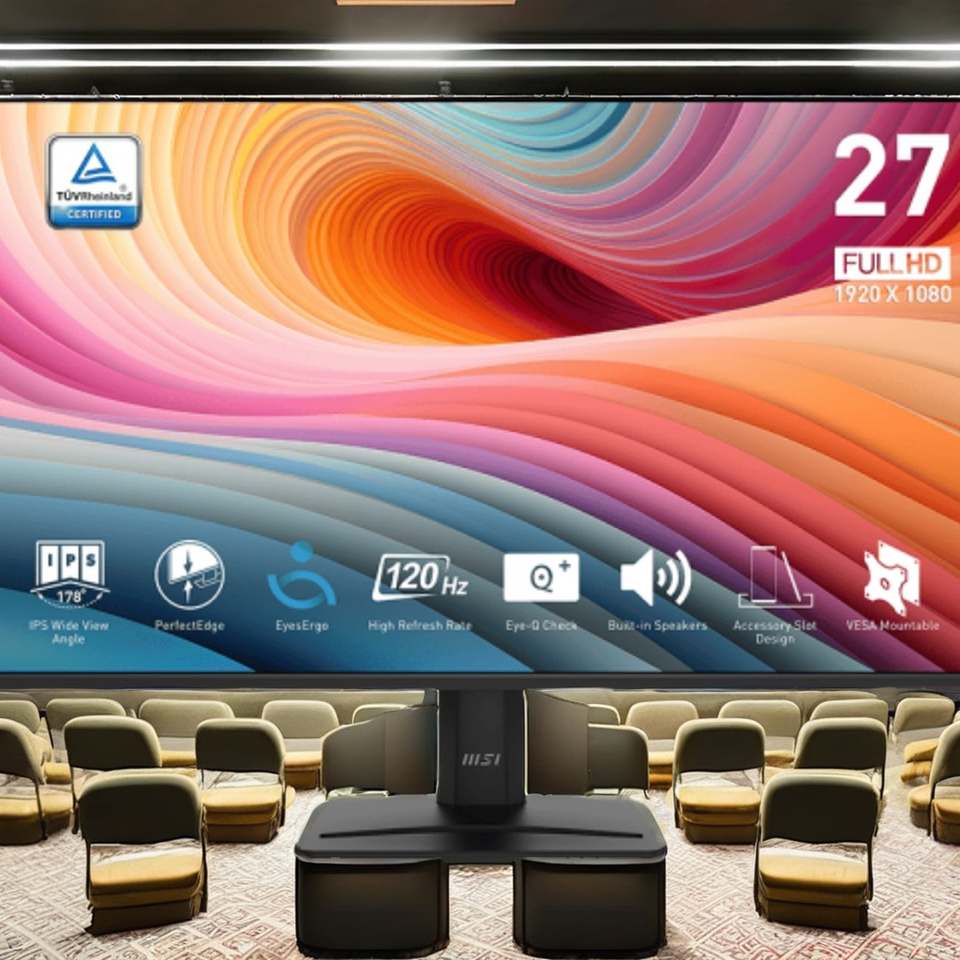 Monitor para Juegos y Oficina PRO MP275 E2 de 27 Pulgadas, IPS, 1920x1080 (FHD), 120 Hz, VGA, Inclinación, Altavoz, Bisel Delgado de 4 Lados, 1 ms, Negro, 116% sRGB