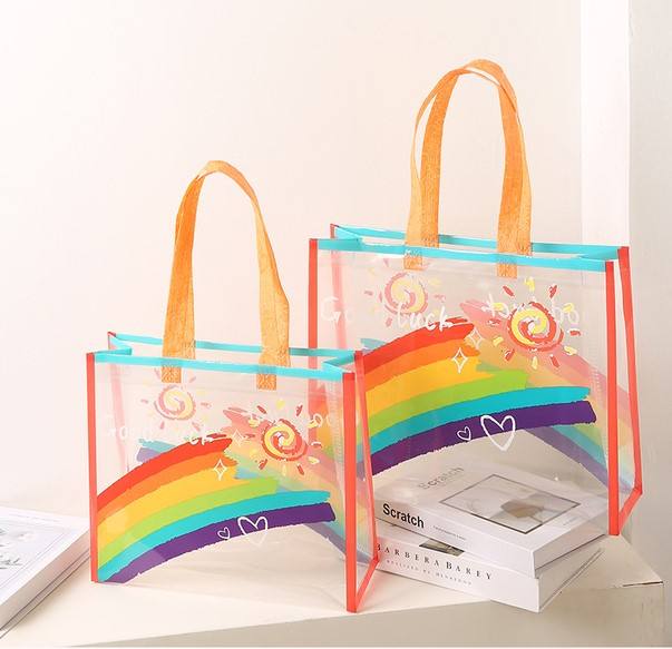 Bolsa de Compras de PVC con Asa Larga, Arcoíris, para Tiendas de Ropa, Embalaje de Regalos Universal, Color Personalizado