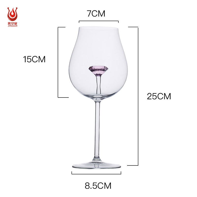 Copa de Vino Tinto de Borosilicato Rojo con Diseño de Diamante para Fiestas, Bodas, Uso Doméstico y en Bares
