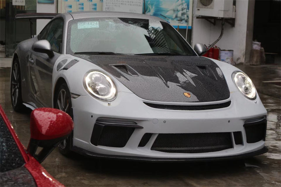 Para Porsche 911 991,2, kit de carrocería de estilo gt3rs de fibra de semi-carbono modificado, falda lateral de parachoques delantero, capó de parachoques trasero.
