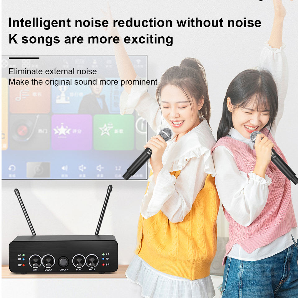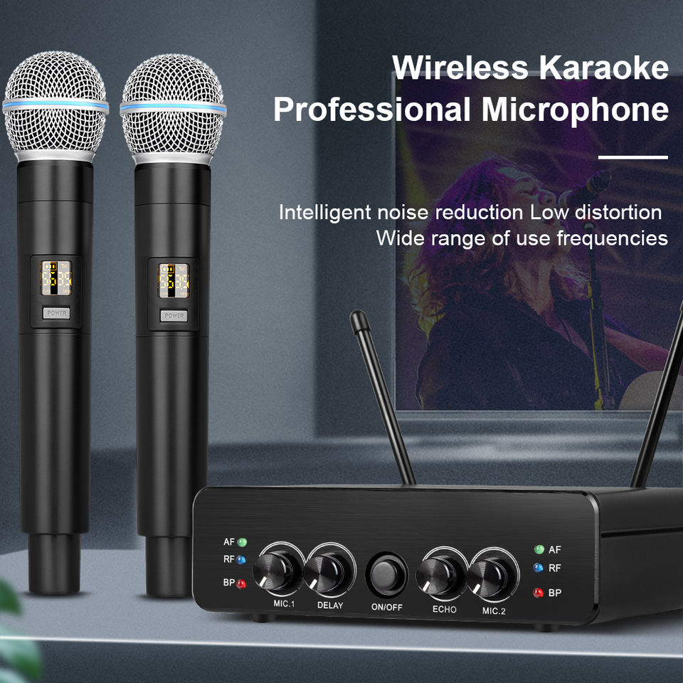 Micrófono Dinámico Inalámbrico UHF Profesional de Largo Alcance R2, Construcción Metálica Cardioide, 2 Canales con Cancelación de Ruido