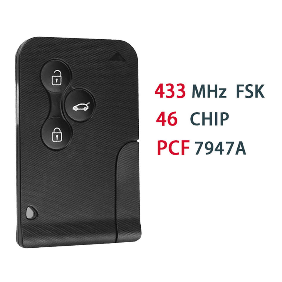 Para Renault Megane II Scenic II Grand Scenic II 2003-2008 reemplazo de 3 botones 433Mhz PCF7947A 46 Chip tarjeta remota llave de coche