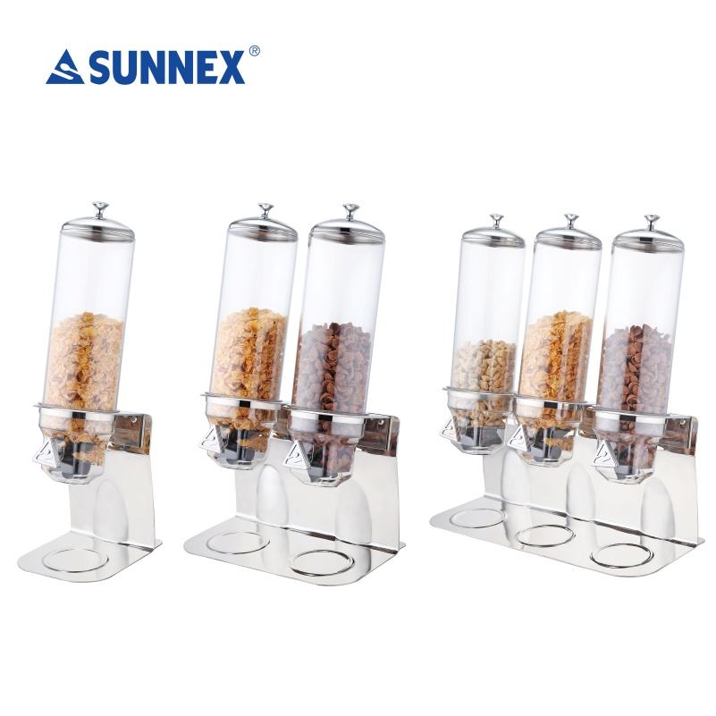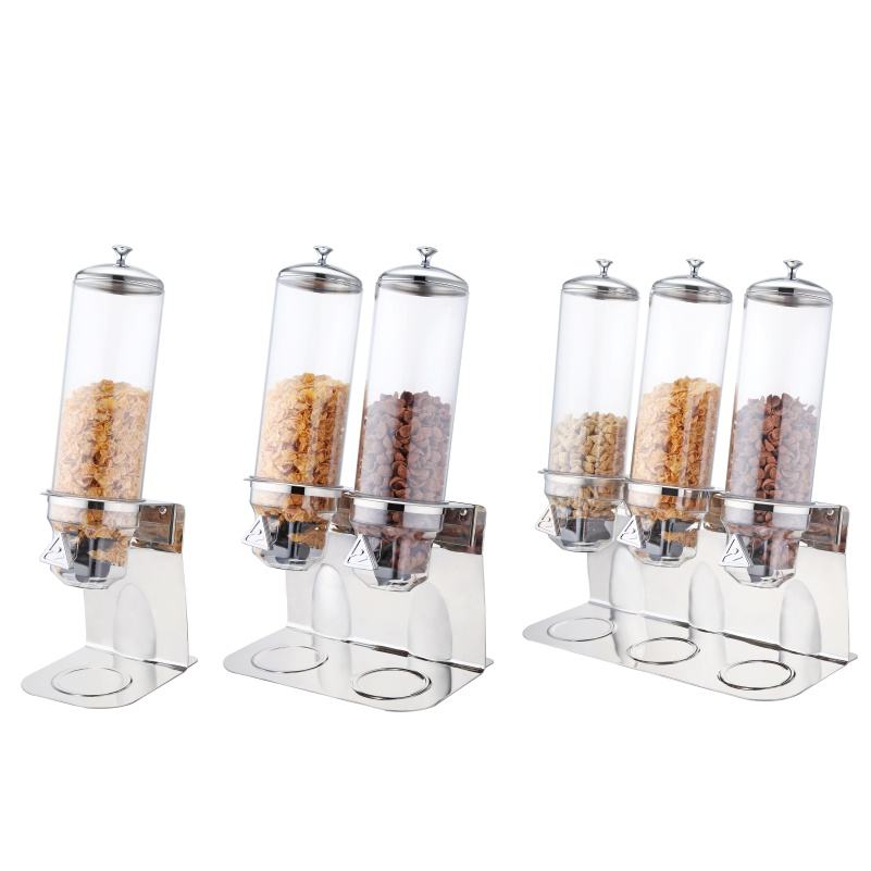 Dispensador de Cereales para Buffet de Restaurante, Base de Acero Inoxidable Pulido de Alta Calidad, Contenedor de PC de 4 Litros x 3