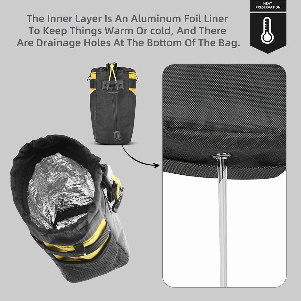 Bolsa para Manillar de Bicicleta Rhinowalk de 1 Litro, Serie Wilderness, Bolsa Térmica de Nailon para Refrigerios con Soporte para Botella y Portavasos