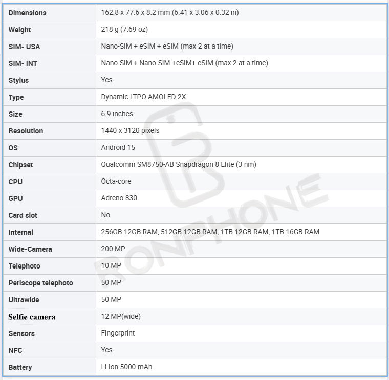 Número de Modelo:for Samsung Galaxy S25 Ultra