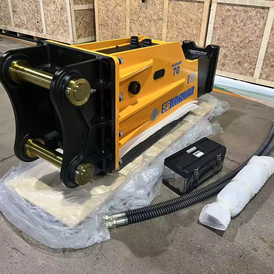 Para SOOSAN SB70 caja de martillos hidráulicos tipo silencio excavadora accesorio piedra demolición construcción roca martillo CE núcleo de motor