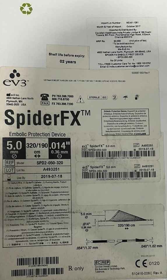Dispositivo de Protección Embólica Manual SPIDER FX Clase II para Hospital, Certificado ISO13485 con 1 Año de Garantía