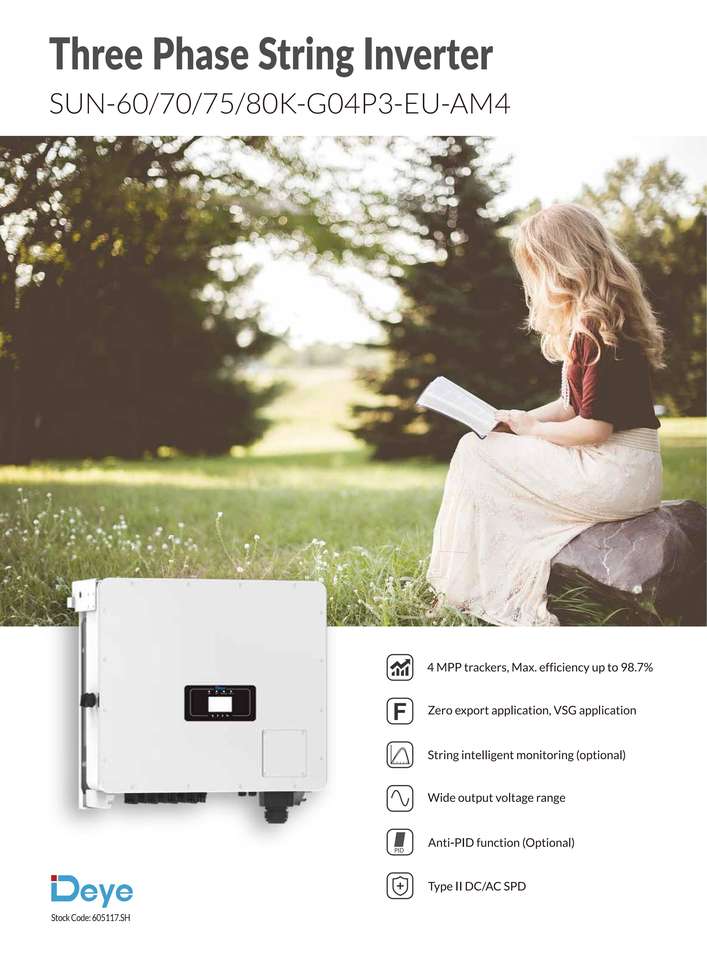 Inversor de Red Trifásico de 50kW para SUN-40/45/50K-G04, Clasificación IP65 para Uso en Exteriores, Sistema Solar Doméstico para Todo Clima, 98.7% de Eficiencia