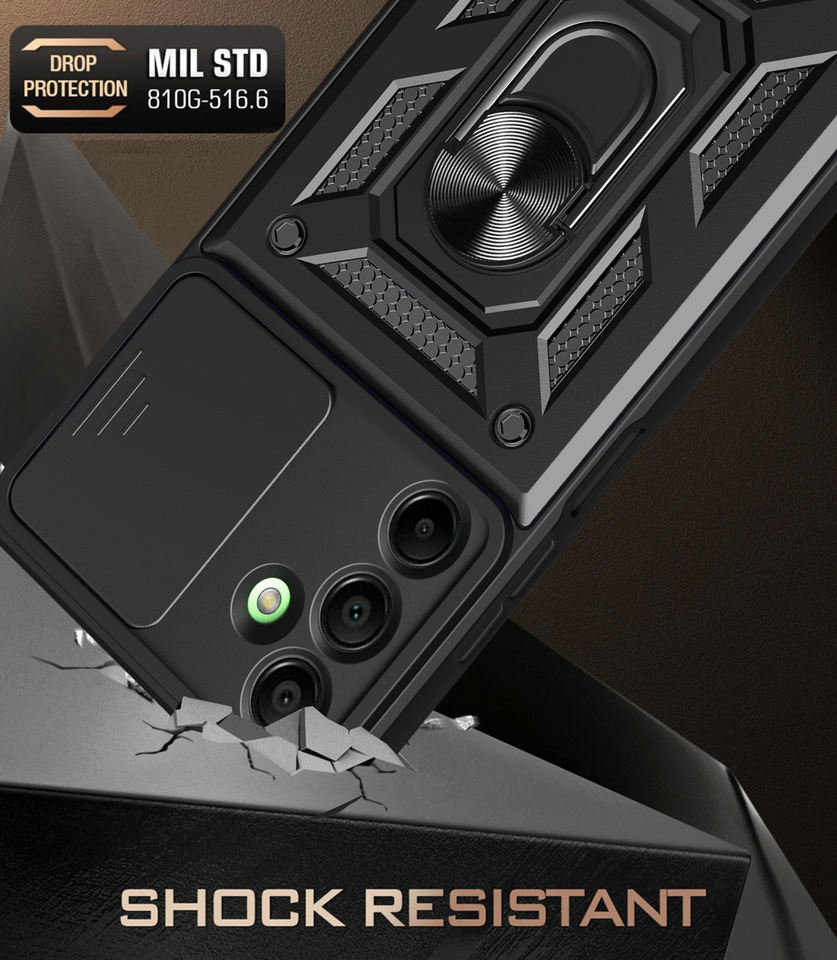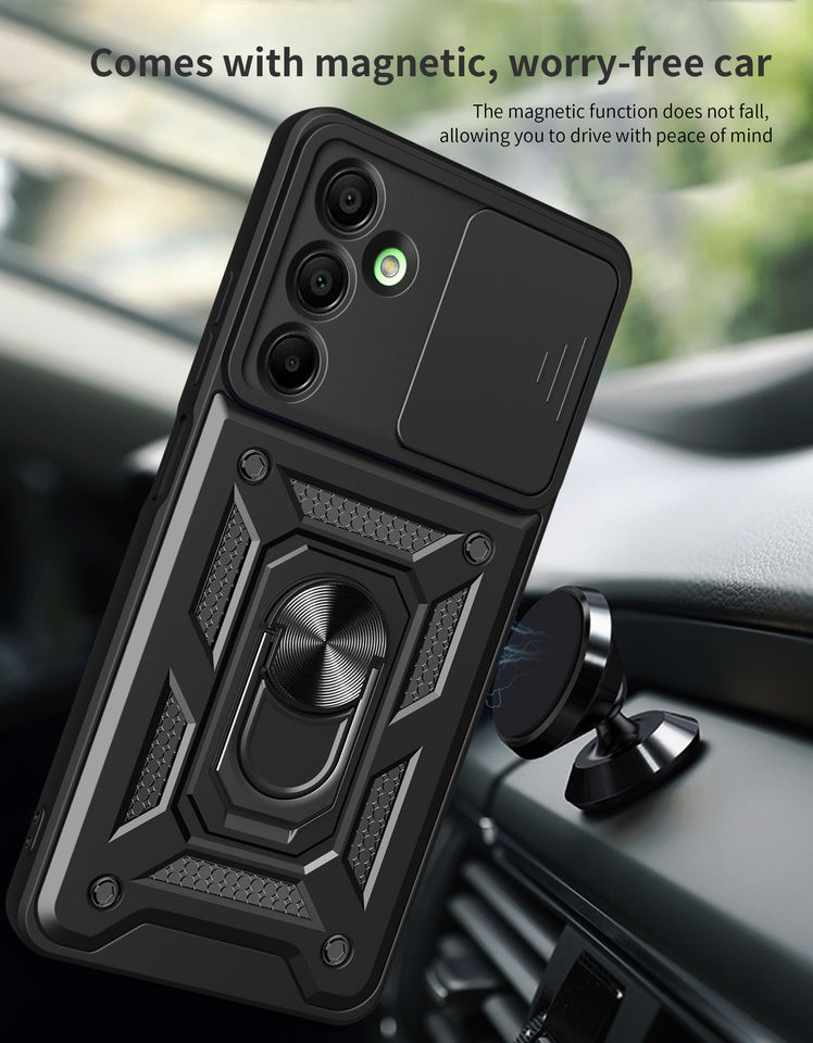 Para Samsung A16 funda con cubierta de cámara deslizante, armadura magnética 360 anillo soporte funda de teléfono móvil para Samsung Galaxy A06 A16 A36 A56