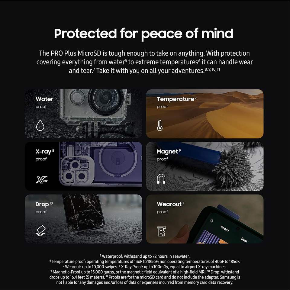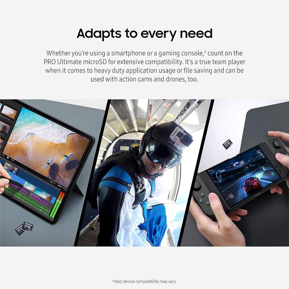 Tarjeta de Memoria MicroSDXC Samsung PRO Ultimate de 256 GB + Adaptador UHS-I 4K UHD 200 MB/s Clase 10 U3V30 A2 16 GB de Plástico