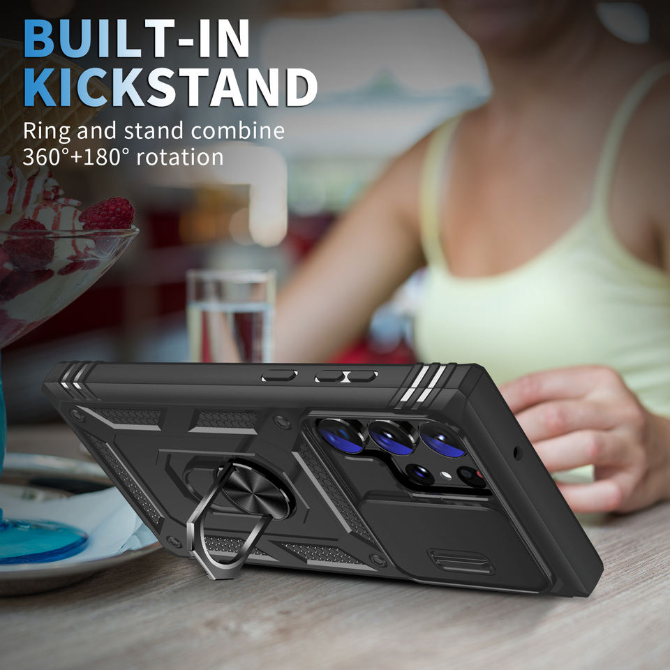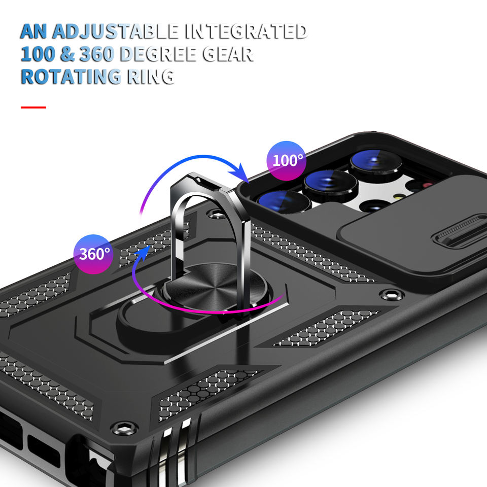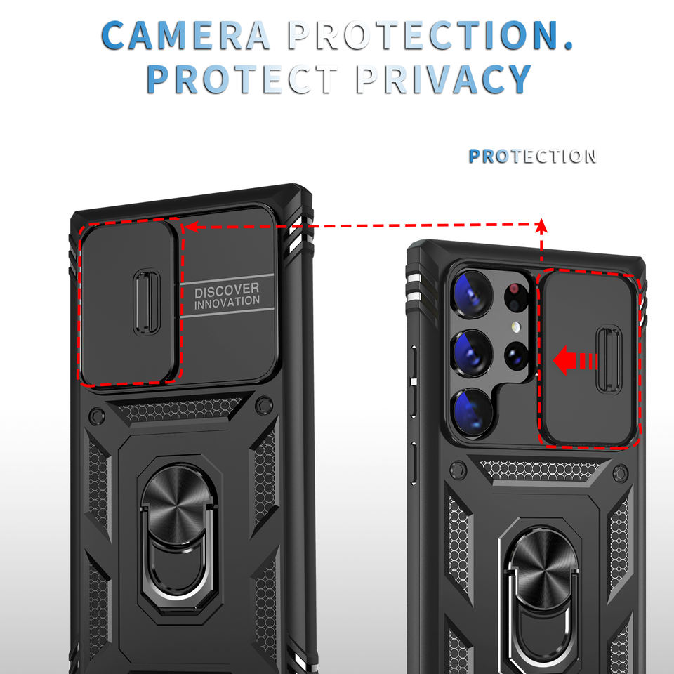Funda para Samsung S23 con Cubierta Deslizante para Cámara, Soporte de Anillo Giratorio de 360 Grados, Soporte Magnético para Coche para Samsung Galaxy S23 Ultra