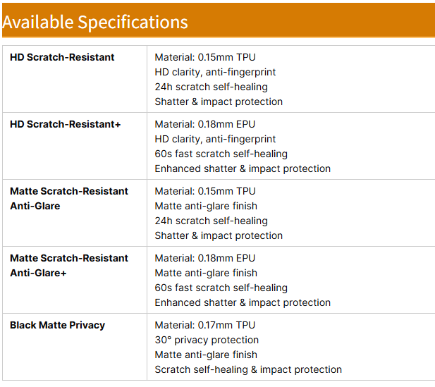 Anti-huella digital, Libre de burbujas, Impermeable, Transparente, Anti-Scratch, HD claro, Resistente a la suciedad, Anti-explosión, Anti-espía, Anti shock, La cobertura completa, Anti-glare, Anti-aceite de, UltrafinoFunción