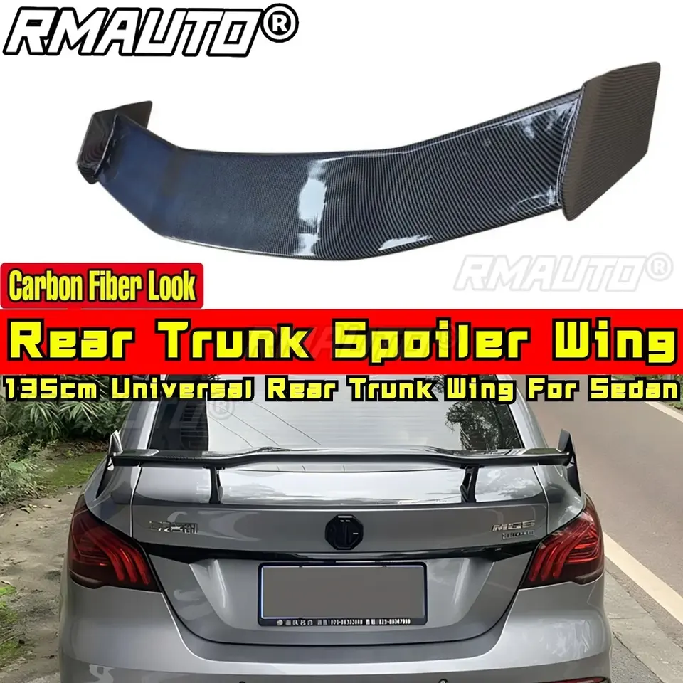 Alerón Trasero Universal de 135 cm para Sedán, Estilo GT con Aspecto de Fibra de Carbono, Alerón Trasero para Maletero, Kit de Carrocería, Accesorios para Automóviles