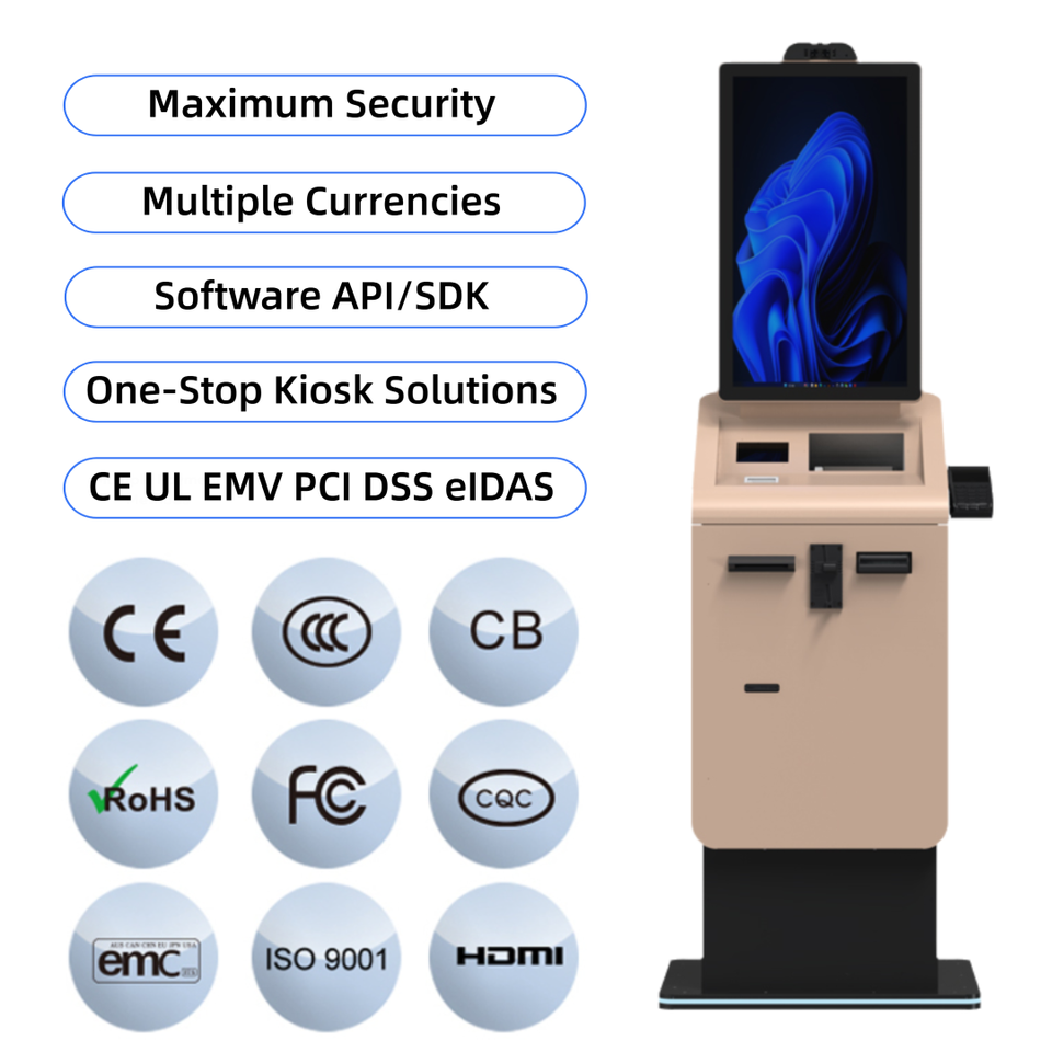 Cajero Automático de Autoservicio con Dispensador de Efectivo y Pantalla de 27 Pulgadas, SDK para Gimnasios y Tiendas