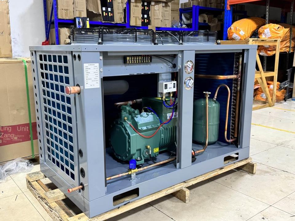 Para caja semicerrada 8P/10P/12p/15p Temperatura media y baja Almacenamiento en frío Host Congelador Unidad de refrigeración 5ton R404a