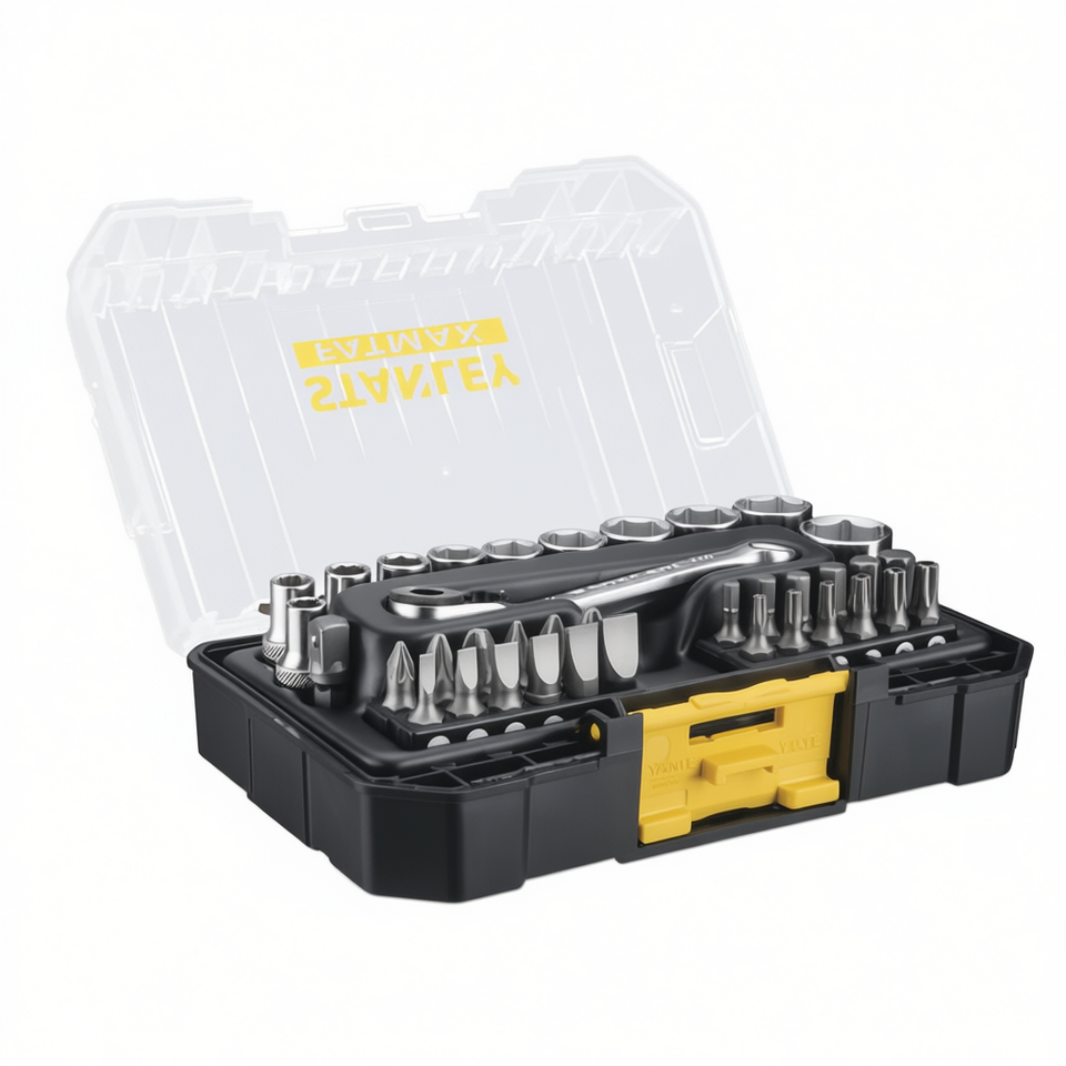 Portaherramientas de trinquete Stanley Pro-Stack de 1/4'' con brocas pequeñas (37 piezas) Juego de brocas y llaves de vaso