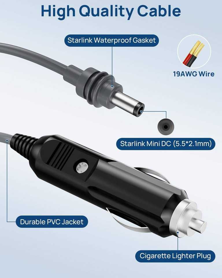 Para Starlink Mini encendedor de cigarrillos de coche a Cable de alimentación de CC para Starlink Mini 12V-24V Cable de alimentación de CC para coche camión autobús barco
