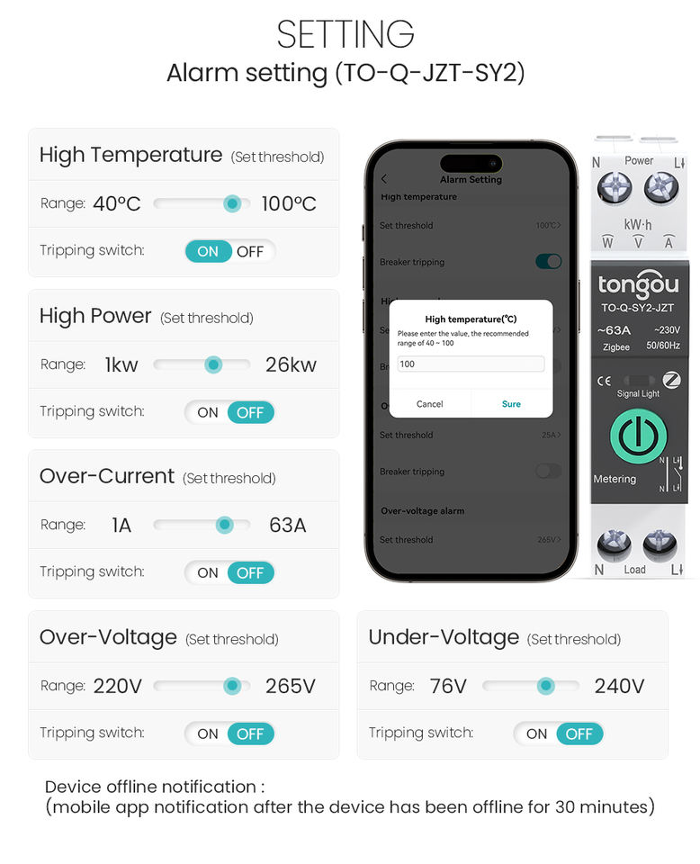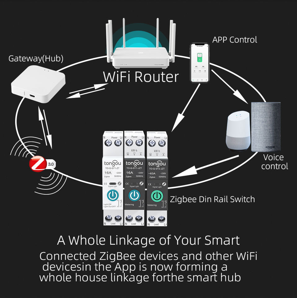 Para TONGOU API TUYA 1-63A Disyuntor en miniatura inalámbrico inteligente ZigBee MCB con protección de voltaje Medición de potencia Cobre Mate