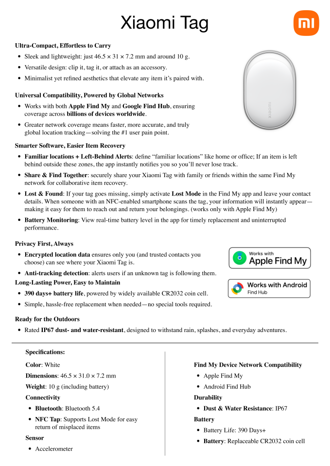 NFC Tap::Supports Lost Mode for easy return of misplaced items