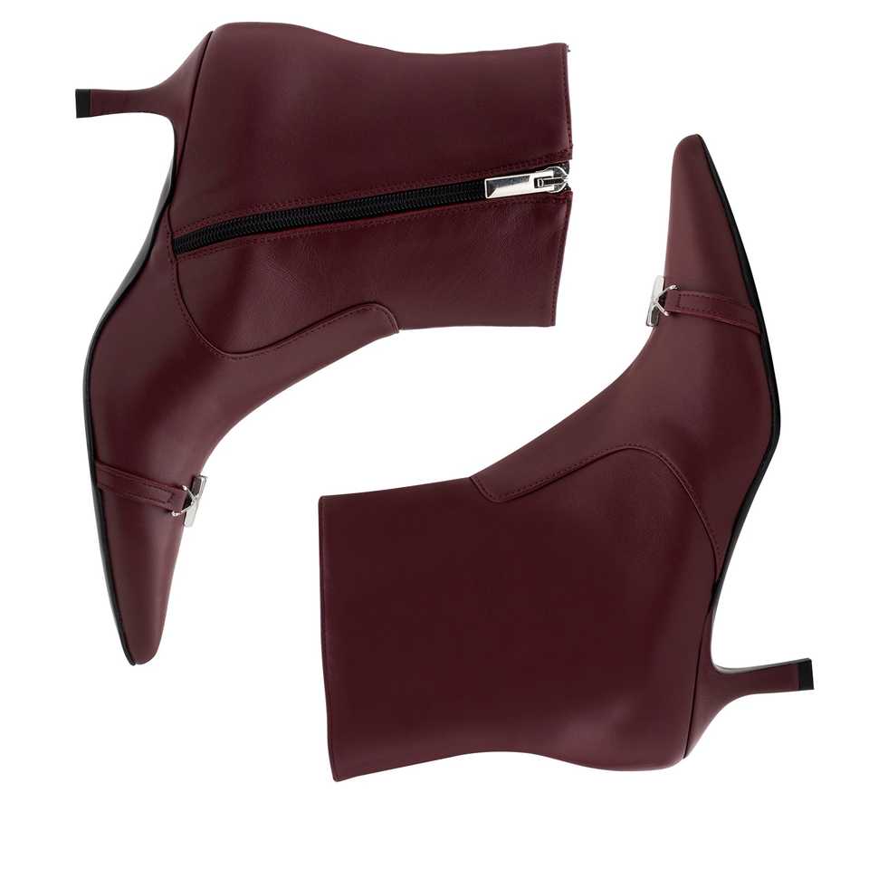 Botines de Mujer Estilo Stivaletto en Nappa Bordeaux, Hechos en Italia, Tacón de 3 cm