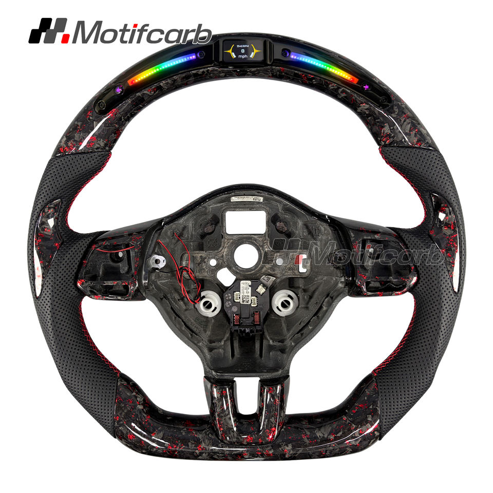 Volante de Fibra de Carbono Forjado Rojo Personalizado con Pantalla LED de RPM para Volkswagen Golf GTI R MK6 Jetta GLI 2010-2014