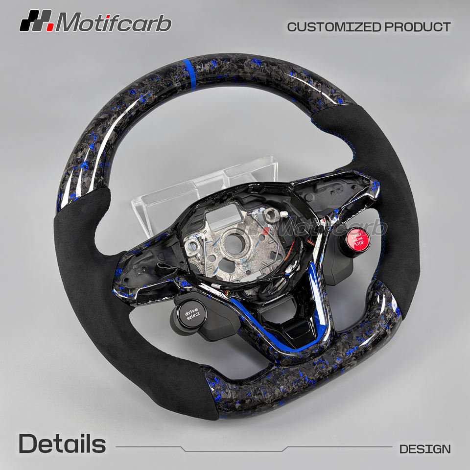 Volante de Fibra de Carbono Forjado Azul Personalizado con Estrella para Volkswagen MK8 Golf R GTI Touareg Jetta Arteon Tiguan 2020-2025