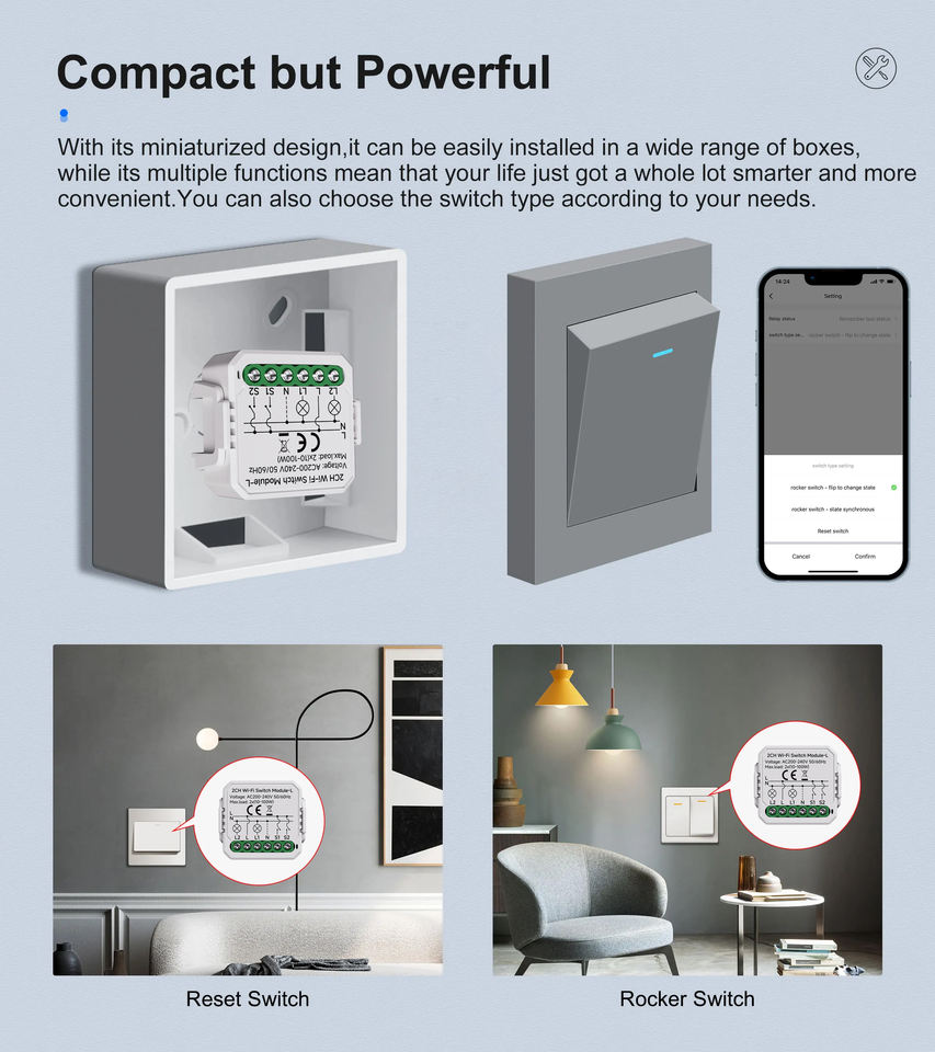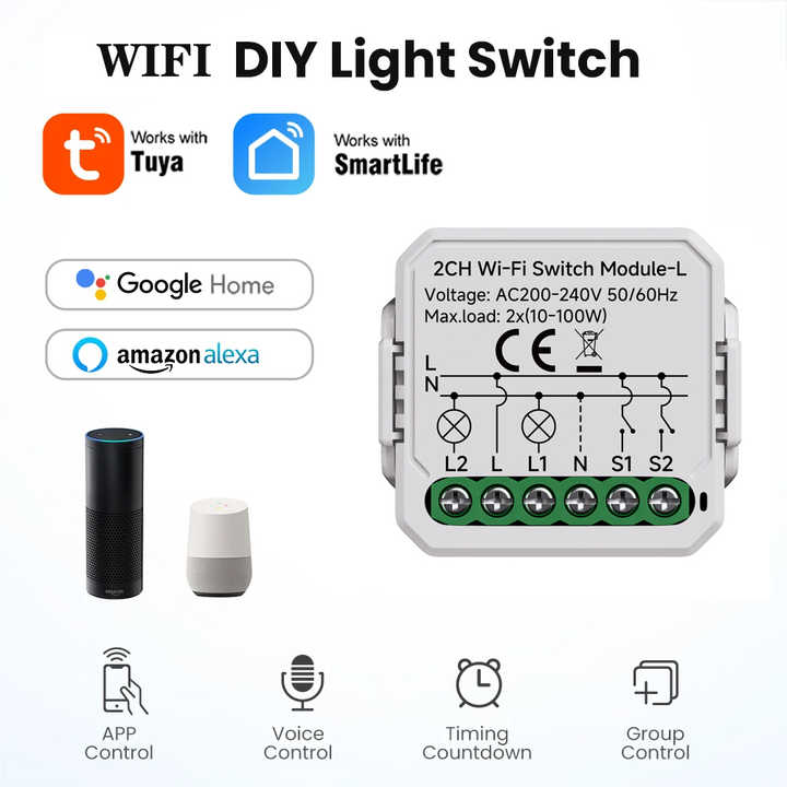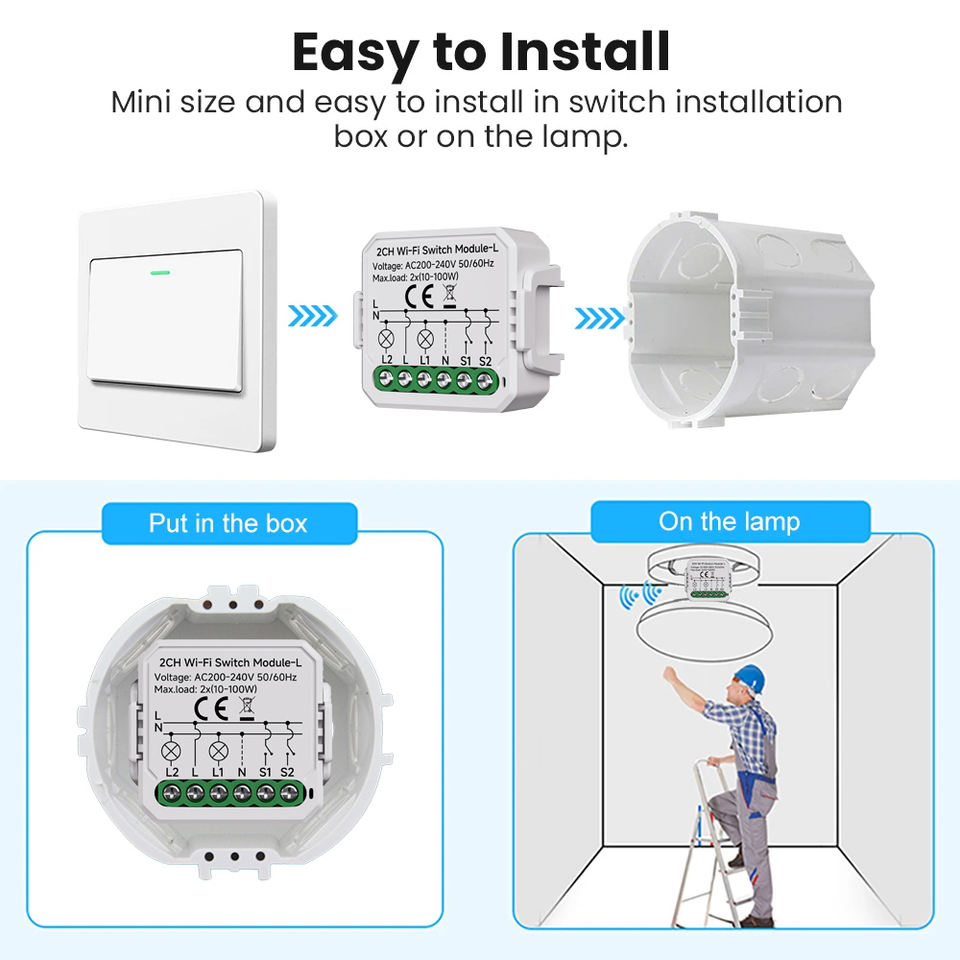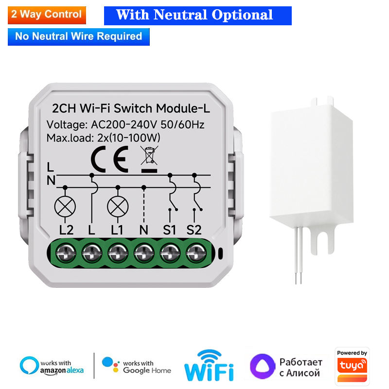Módulo de Interruptor Inteligente WiFi, Sin Necesidad de Cable Neutro, Relé de Interruptor de 2, 3 y 4 Canales, Neutro Opcional, Compatible con Alexa y Hey Google, 240V 10A