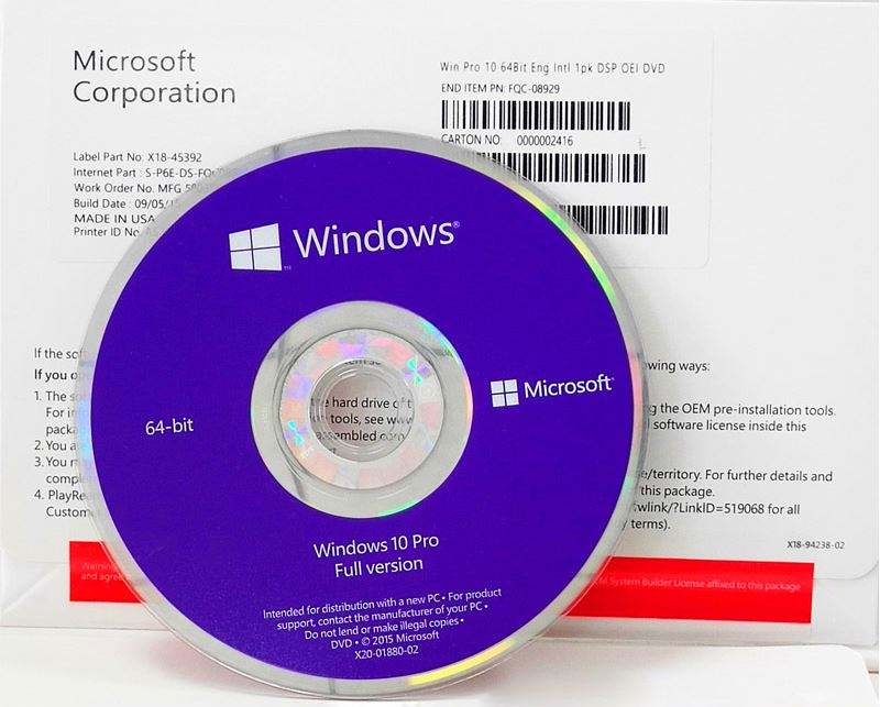 Paquete OEM Coa+DVD