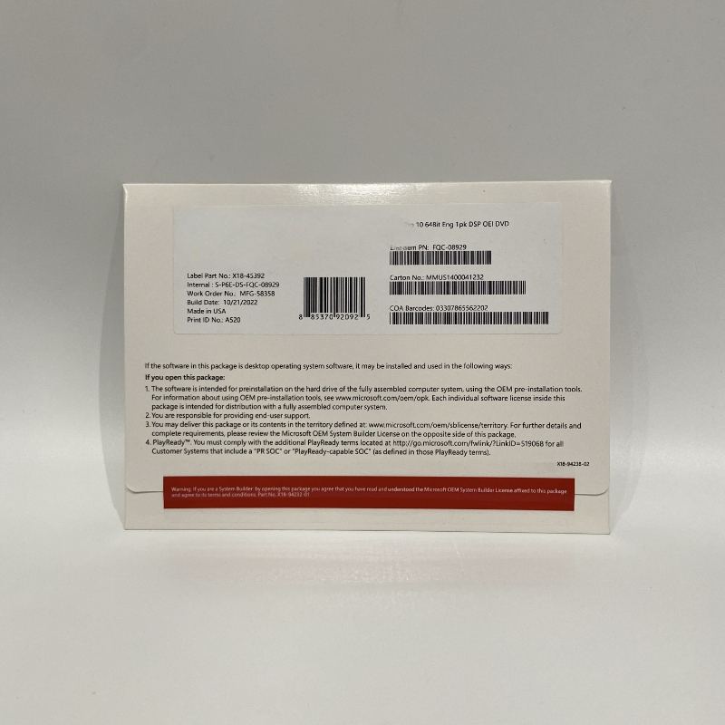 Sistema Operativo Win 10 Pro en DVD OEM con Etiqueta COA, Paquete Completo, Licencia Original, Activación en Línea, Garantía de 6 Meses