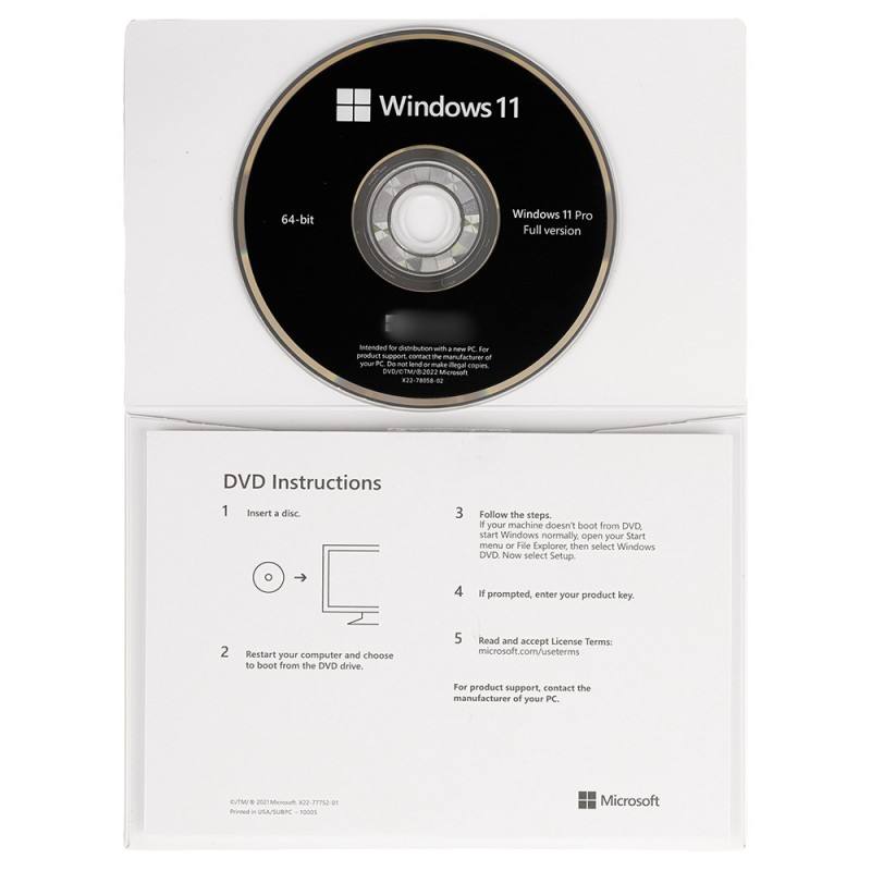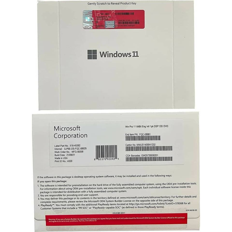 Windows 11 Pro OEM DSP DVD Paquete Completo, Activación Global en Línea, Etiqueta de Clave de Windows 11 Pro con DVD, Sistema Operativo