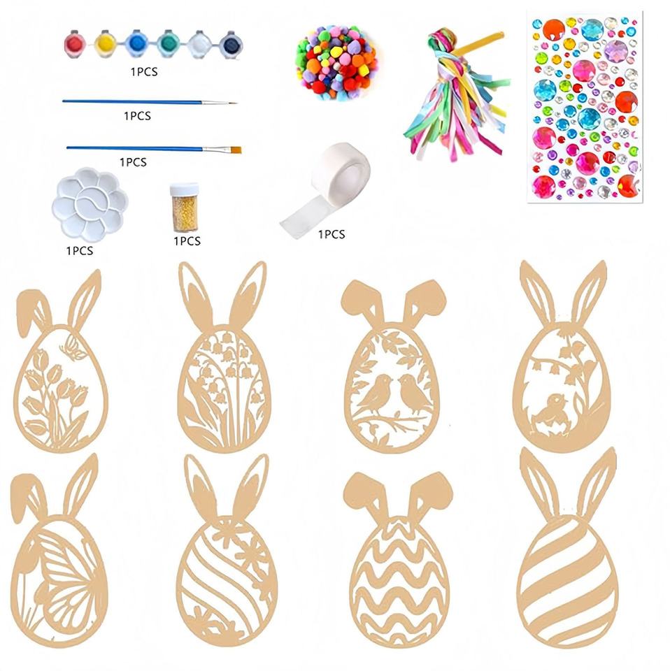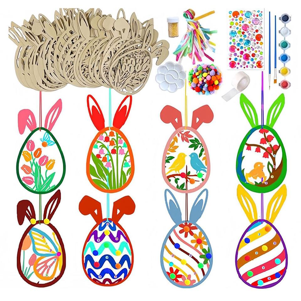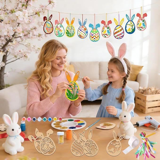 Set de Pintura para Interiores, Manualidades Infantiles de Conejo de Pascua de Madera para DIY