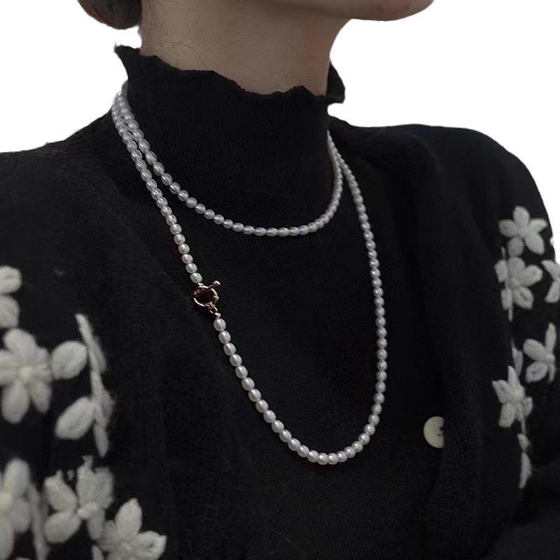 Collar de Perlas de Agua Dulce Ajustable Clásico con Cadena para Xiaomi, Collar de Perlas de Lujo Ligero con Forma de Arroz y Concha Marina Natural