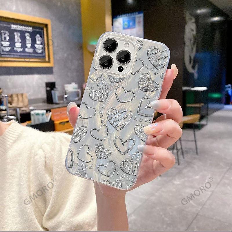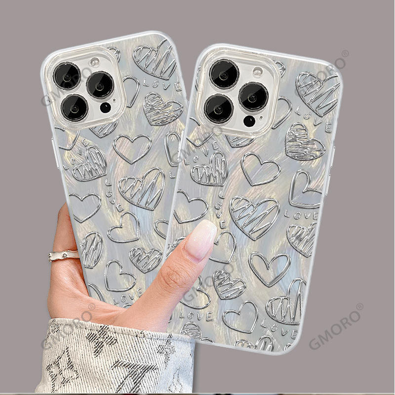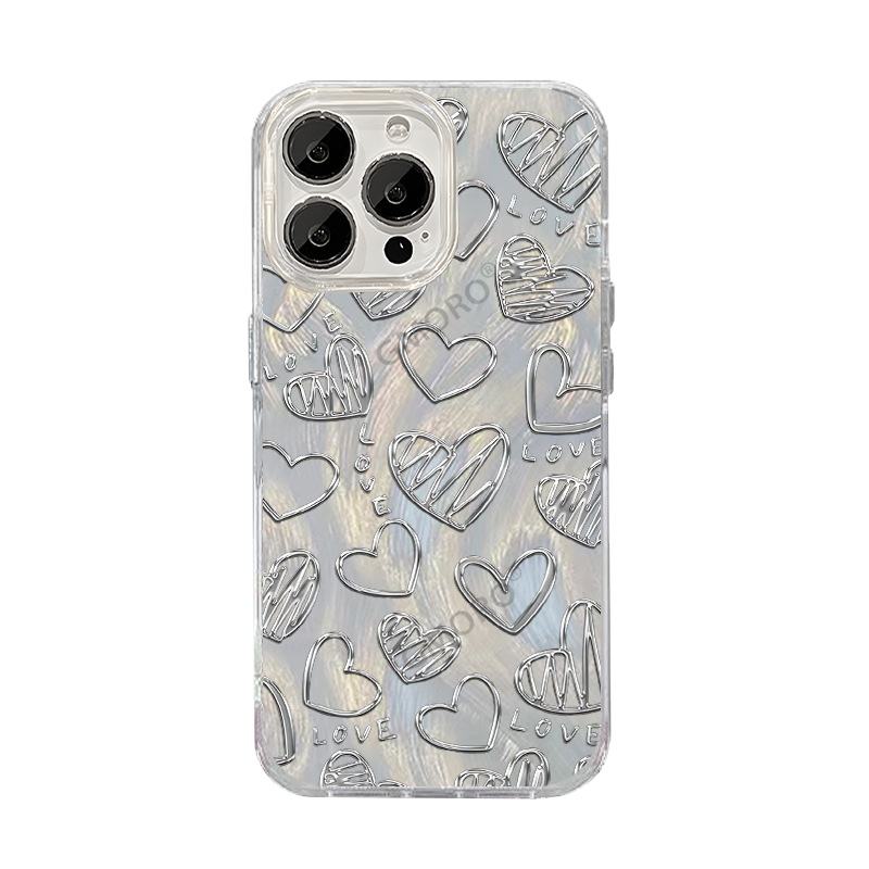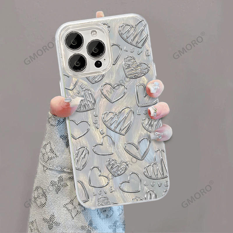 Funda para Teléfono Móvil Compatible con iPhone 16/17 Pro Max, Diseño Transparente Antigolpes con Patrón de Corazón y Textura de Pluma