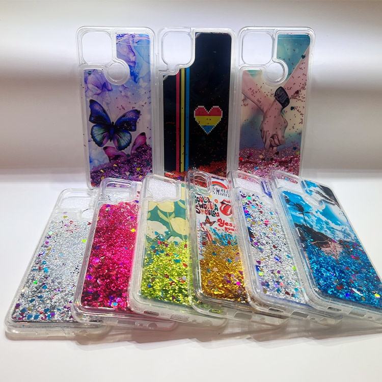 Funda para iPhone 14 pro Max 15 11 12 con purpurina de agua, arena movediza líquida, diseño anticaída transparente de cuatro esquinas para mujer