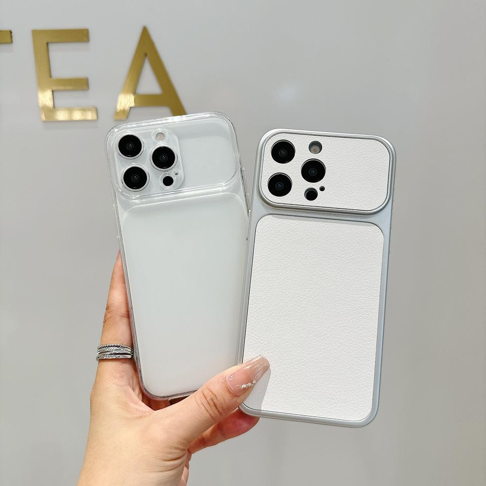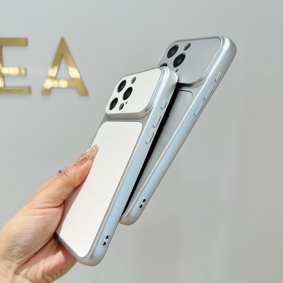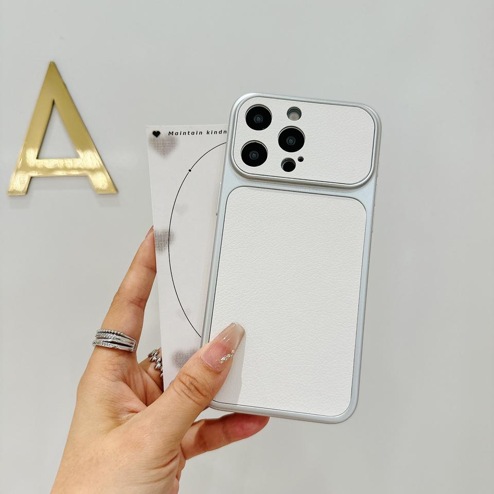 Funda Protectora Delgada y Resistente a Impactos para iPhone 16/17, con Ventana Grande, Textura de Piel de Cordero, Personalizable con Logotipo