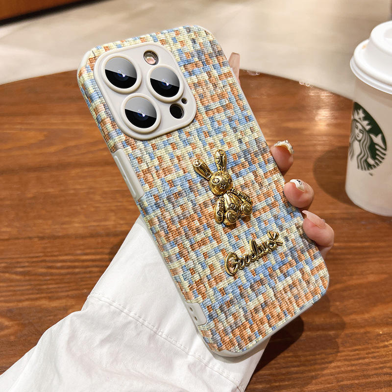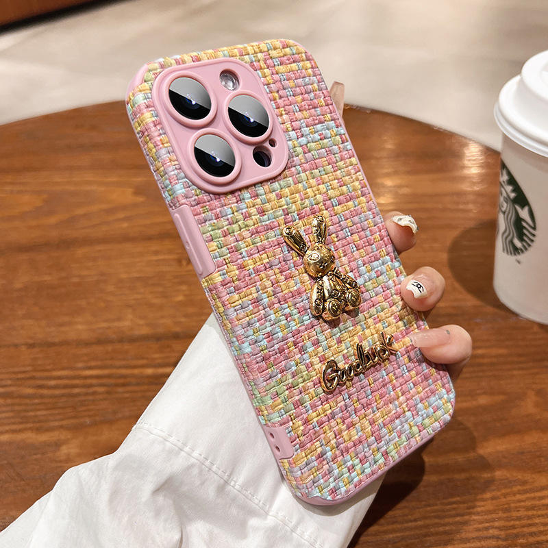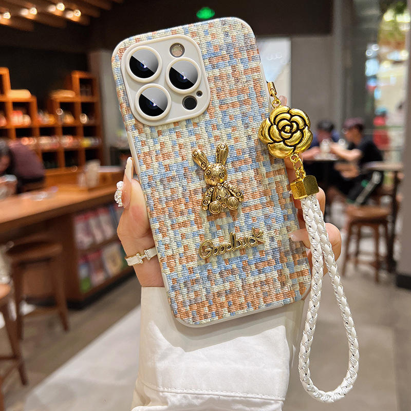 Para iPhone 16 Pro Max funda de teléfono para iPhone 14 patrón tejido 13 15 funda de protección de teléfono cuerda de mano 12 lindo colgante de conejo