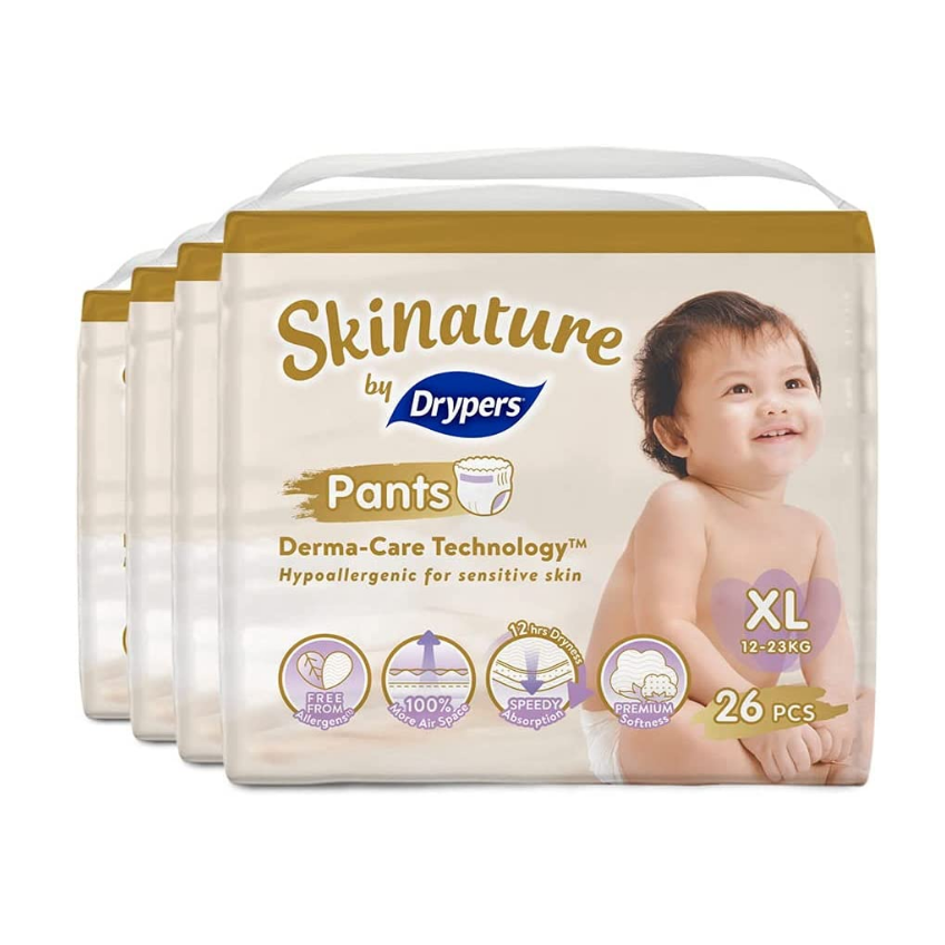 Pañales Drypers Skinature para Bebés y Niños Pequeños, Talla XL (4x26 unidades)
